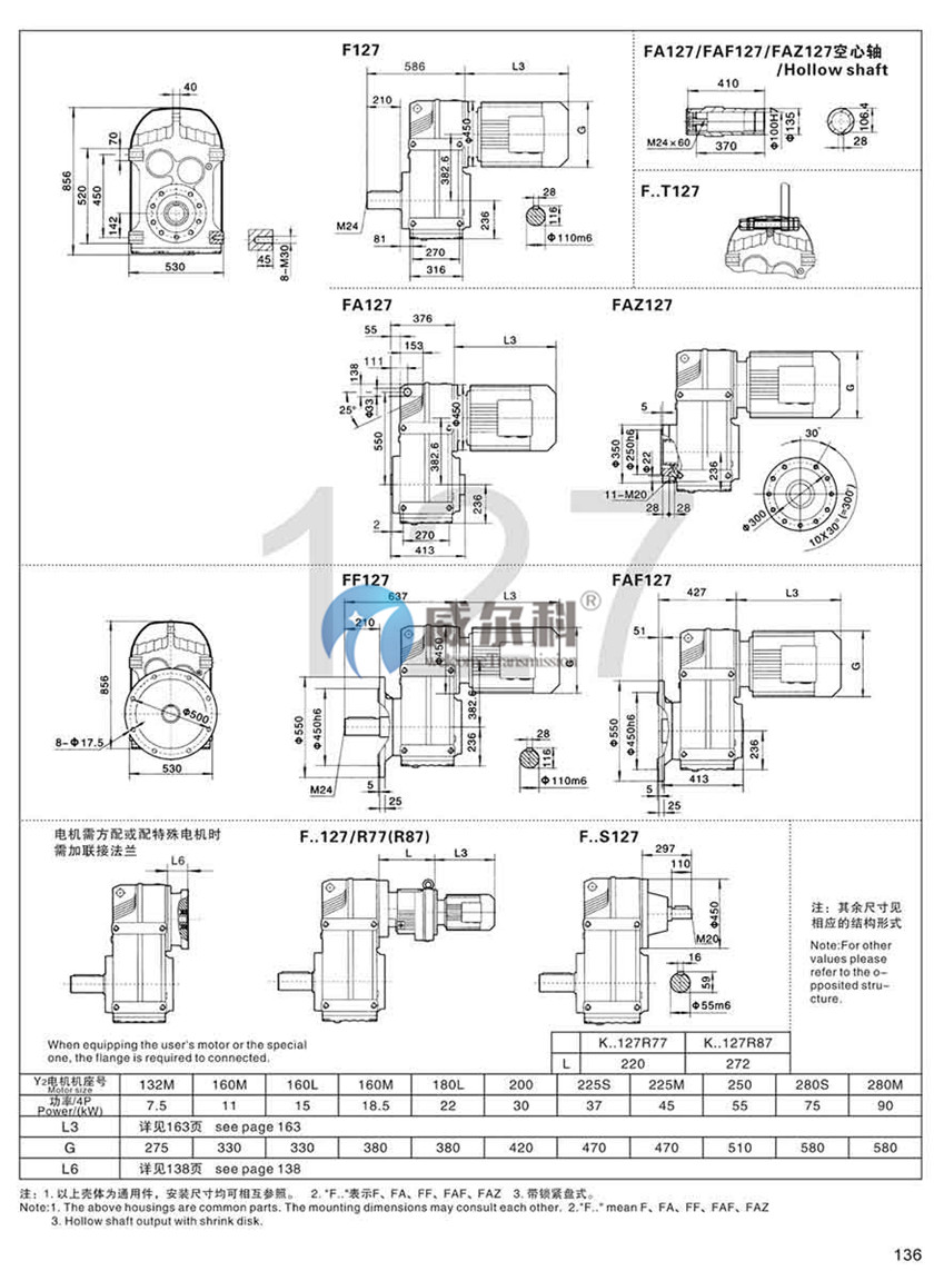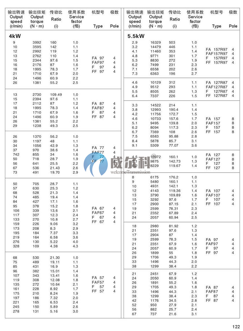 F-軸伸式、底腳安裝FA-軸裝式聯(lián)接
