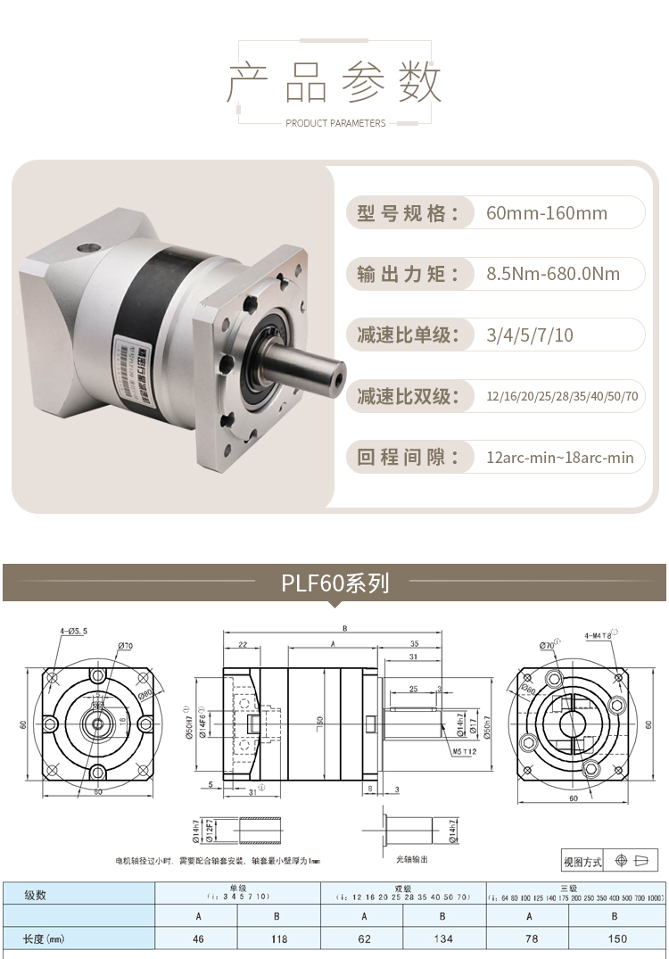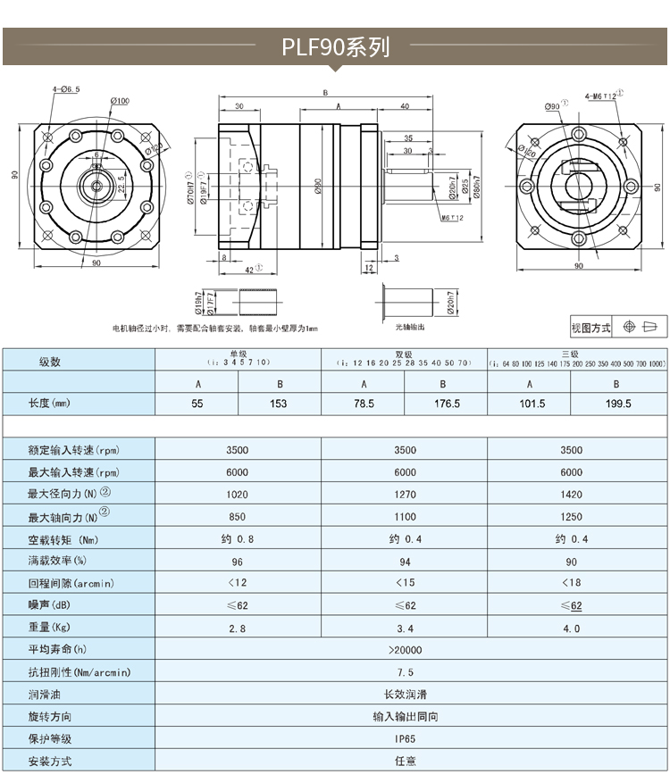 行星減速機(jī)特點(diǎn):產(chǎn)品全面升級(jí),采用前后油封,齒輪配件日本進(jìn)口,國際知名品牌NSK軸承,具有高精度、高鋼性、高負(fù)載、高效率、高速比、高壽命、低慣性、低振動(dòng)、低噪音、低溫升、外觀美、結(jié)構(gòu)輕小、安裝方便、精確定位等特點(diǎn),適用于交流伺服馬達(dá)、直流伺服馬達(dá)、步進(jìn)馬達(dá)、液壓馬達(dá)的增速與減速傳動(dòng)。能與任何電機(jī)匹配安裝(如松下,安川,三菱,西門子,富士,臺(tái)達(dá),東元,臺(tái)安,匯川,信捷,埃斯頓......)電機(jī)不同,與之匹配的尺寸將有所變化,適配器將不同,配特殊電機(jī)可以訂做??!