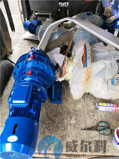 向我司采購擺線針輪減速機 配套剎車電機7臺,具體型號是XWED74-320-YEJ2.2 5臺 XWED63-187-YEJ1.5 2臺,上圖為我司物流部門人員簡單打包,裝配電機,隨后送到客戶工廠。窯爐設(shè)備專用減速機就選威爾科。